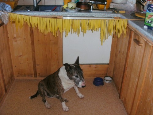 Uta vom Kalkofen - "Fly" genießt die Sonne * 29.12.98 | | Uta vom Kalkofen - "Fly" bewacht die selbstgemachten Nudeln |